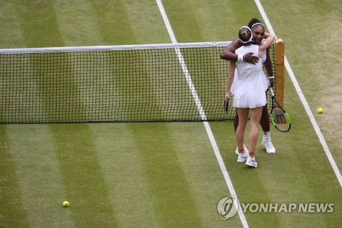 Simona Halep of Romania at the net with Serena Williams of the US whom she defeated in the women's final of the Wimbledon Championships at the All England Lawn Tennis Club, in London, Britain, 13 July 2019. EPA/TOBY MELVILLE / POOL EDITORIAL USE ONLY/NO COMMERCIAL SALES